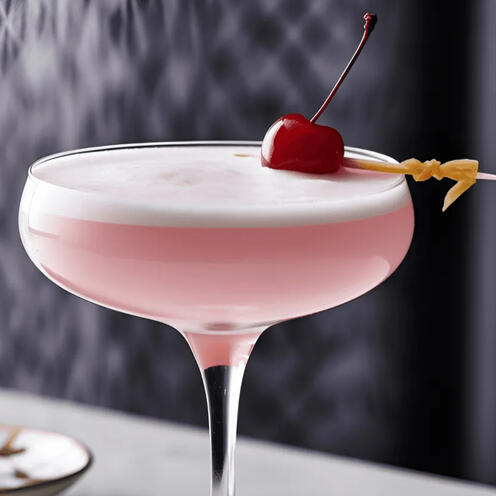 This candy colored drink is a total indulgence. Creme de noyaux liqueur gives it the delicate pink color and an almond essence. Combined with white creme de cacao and heavy cream to make a smooth dessert like drink that tastes like nostalgia and melted ice cream.