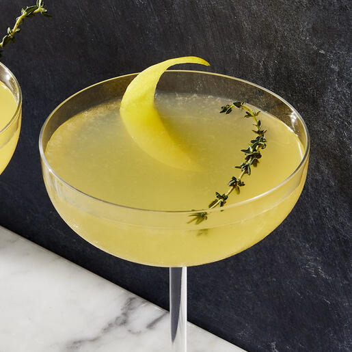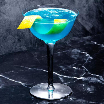 Don't let the vibrant blue fool you. This delicious craft cocktail will leave you begging for more. Chilled dry gin, blue curaçao, Lillet blanc, and fresh-squeezed lemon juice in an absinthe rinsed glass.