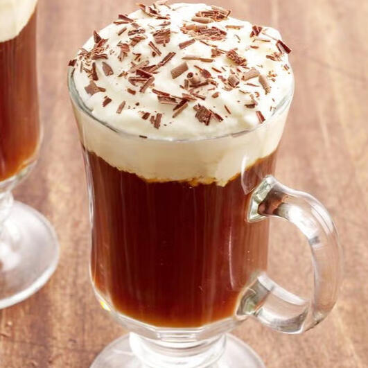 A warmed cocktail that's sure to chase off any lingering chill, an addictive mixture of Buscarron's Whiskey and sweetened freshly brewed coffee rests under a luxurious cloud of lightly whipped cream. Chocolate shavings are dusted over the top to add a soft touch of sweetness to the simple cocktail.