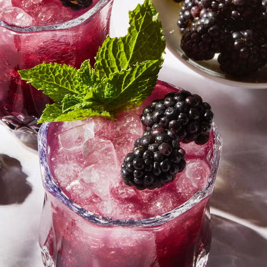 The sweet-tart flavors of blackberries and raspberries vie for dominance in this effervescent rum & champagne cocktail. Easy to sip, but deceptively strong.